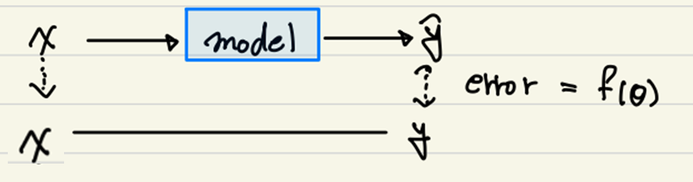 우리는 x를 model안에 집어 넣어서 예측값인 y.pred값을 model로 부터 얻어낸다.
